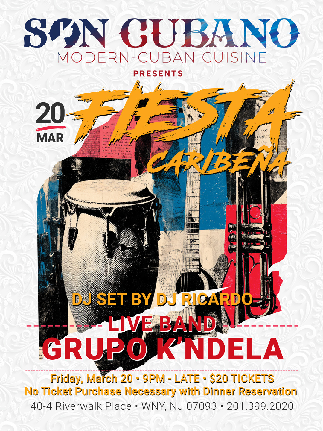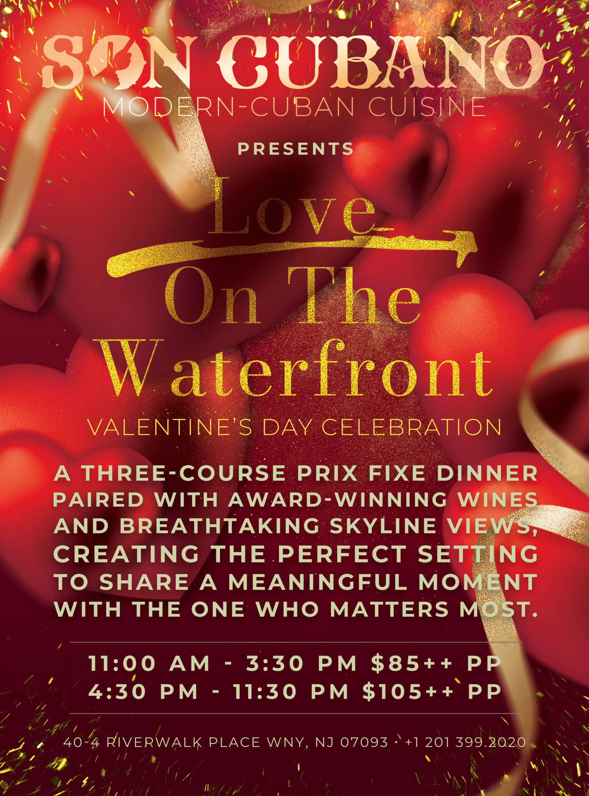 One of New Jersey’s premier award-winning restaurants, Son Cubano provides excellent service and an atmosphere dedicated to the 1950s Cuban era of glamour, elegance, music, dancing, flavors, style, entertainment and heritage. The open-air setting, vintage décor, modern Cuban influenced cuisine, live music and a full view of the Manhattan skyline leave a lasting impression.